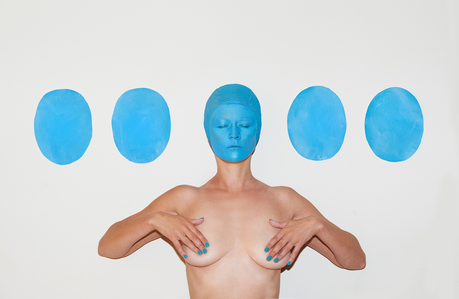 Julia only uses the white wall of her own flat and some home stuff like outfits, food and paintings. She doesn't use any Photoshop effect, everything is real. All her ideas come from very limited tools an she is the main performer of the stage she created.